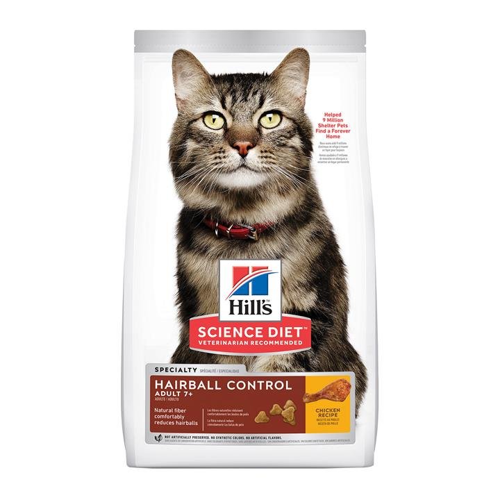 Hill’s Science Diet Adult 7+ Hairball Control Chicken Recipe Senior Dry Cat Food is a highly balanced food for seven years and older mature cats. Made up of natural fiber technology, this nutritionally rich food reduces hairball formation in 30 days.