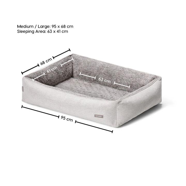Supportive orthopaedic cushion & plush lined interior Supportive orthopaedic cushion & plush lined interior Ortho Snuggler Cashmere Our popular Australian Made Snuggler is now available in beautiful, luxurious shades of Cashmere and Brown Chinchilla, two of our new fabrics that pets absolutely love. The Cashmere on the outer side is a durable, upholstery-grade fabric, while the Brown Chinchilla lining on the inside is a calming, faux-fur plush. This combination is luxuriously comfortable and perfect for pets with anxiety. The base contains a super-comfort orthopaedic foam cushion, evenly dispersing the weight of your pet and providing the perfect support for younger and older dogs alike. This makes it suitable for pets with hip or joint problems, while the soft-filled bolstered sides add protection and comfort. Featuring a non-slip base, upholstery-grade fabrics, and zippered removable covers that are machine washable, the Snuggler is designed for convenience and longevity. Each bolster is filled with Snoozafill, which is removable, replaceable, and washable. Like all Snoozas, this bed is made to last. *Please note: Due to the nature of the two-stage dyeing process, some shade/colour variations and markings may occur. Polyester cover EcoFreshâ„¢* side bolsters Faux fur plush interior lining Australian Made Super Comfort Orthopaedic Foam *Our EcoFreshâ„¢ is a special blend of recycled PET fibre (made from plastic drinking bottles) and premium Australian made foam specifically designed for pets. Perfect for pets and friendly to the planet. Remove body cover, bolsters and foam base before washing. Foam Base Spot clean Covers & Soft Filled Bolsters Warm machine wash 40c. Do not bleach. Cool tumble dry. Do not iron. Do not dry clean. Cushion (with fill) Warm machine wash 40c. Do not bleach. Cool tumble dry. Do not iron. Do not dry clean. Orthopaedic base for maximum support Structured bolsters for support and protection Luxury plush fabrics for maximum cosiness Furnishing grade fabrics to suit modern interiors Removable, replaceable and washable covers Replacable orthopaedic foam and fill We only use fill fibres made from recycled PET (drink bottles) We only use Australian made foams Repairable with the Snooza Repair Service
