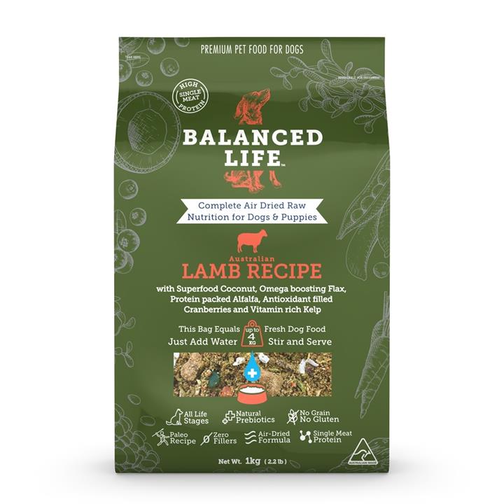 Balanced Life Air Dried Grain Free Single Protein Dog Food – Lamb – 1kg