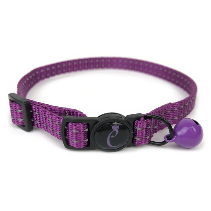 Cattitude Classic Reflective Cat Collar with Breakaway Safety Clip & Bell – Purple