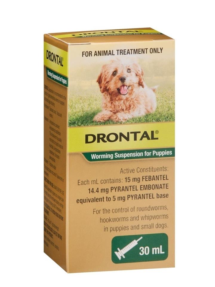 Drontal Suspension Roundworm, Hookworm, and Whipworm Worming Syrup for Puppies – 30ml