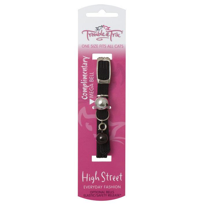 High Street Elastic Cat Collar with Double Bells [Colour: Black]
