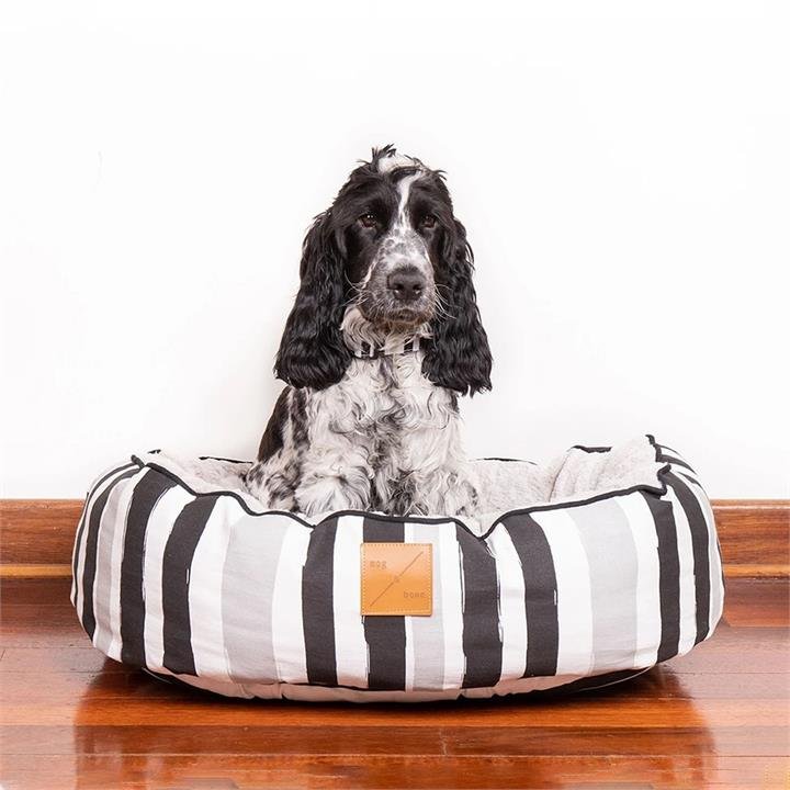 Mog & Bone Bolster Dog Bed – Latte Hamptons Stripe – Large